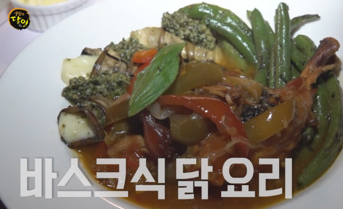 이곳에서 빼놓을 수 없는 또 다른 요리는 '바스크식 닭 요리'입니다. 바스크 지역의 전통 요리로, 닭고기를 노릇하게 구워내고, 특별한 소스로 마무리한 이 요리는 고소하고 깊은 맛을 자랑합니다. 노릇하게 구운 닭다리와 풍부한 야채가 어우러진 이 요리는 프랑스와 스페인의 국경지대에서 유래된 특별한 요리입니다.