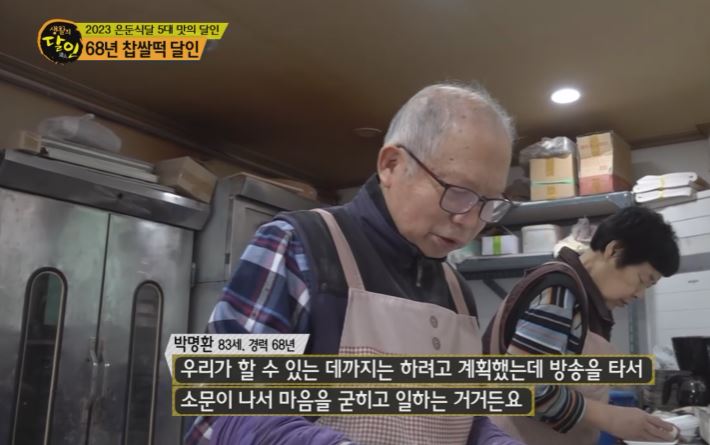 시작은 15살 부터 시작해 68년 평생을 갈고 닦아온 달인의 손맛과 인생이 담긴 찹쌀떡 감동입니다. 원래는 올해 추석까지 하고 그만두시려고 했는데 생활의 달인에 나와서 계속 하시고 계십느데 계속 이달까지만 이달까지만 하고 만다고 하십니다.