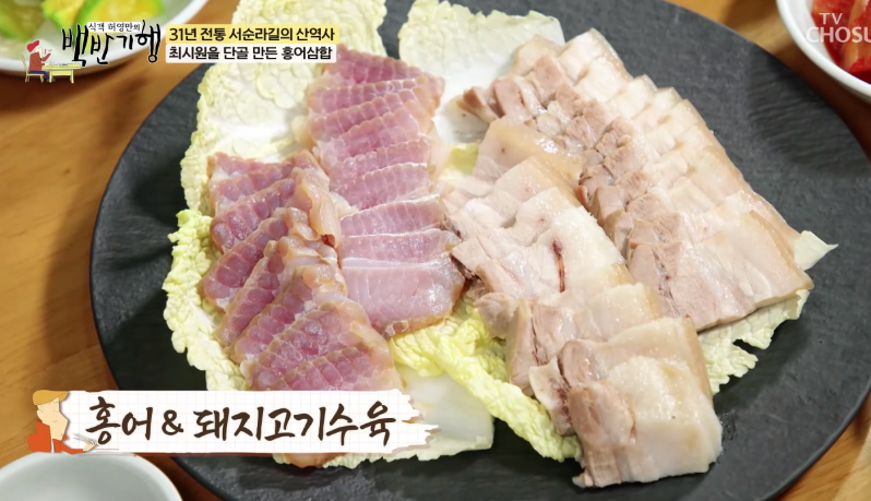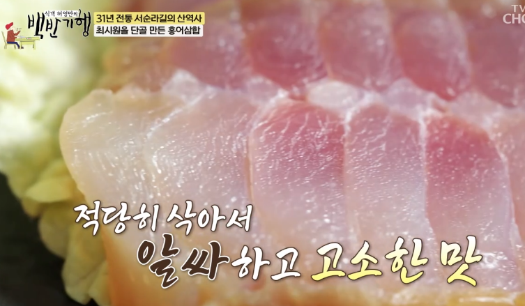 먼저 등장한 홍어삼합은 잘 익은 묵은지, 고소한 돼지고기, 그리고 부드러운 홍어의 조합으로 이루어진 요리였습니다. 최시원 씨는 돼지고기와 홍어가 어우러지는 맛에 감탄하며, 홍어의 진한 풍미를 즐겼습니다. 또한, 이 집의 묵은지는 사장님의 어머니께서 매년 강원도 원주에서 천 포기씩 담가낸 것으로, 깊은 맛을 자랑했습니다.