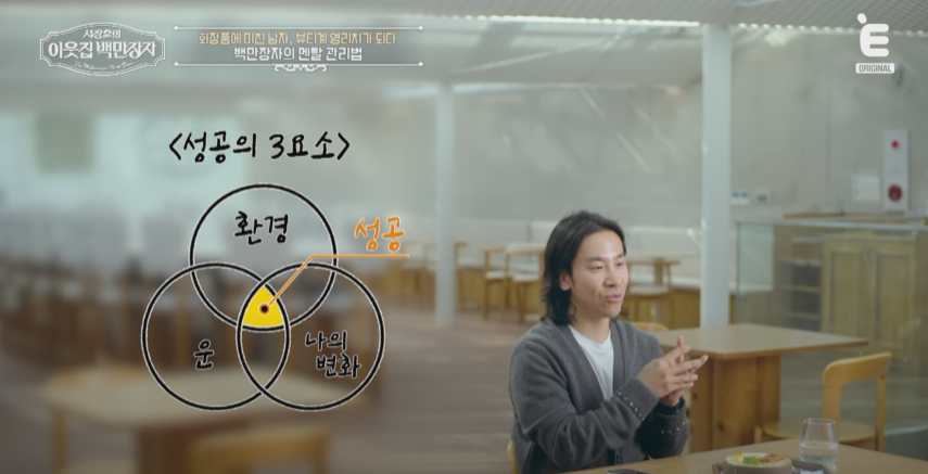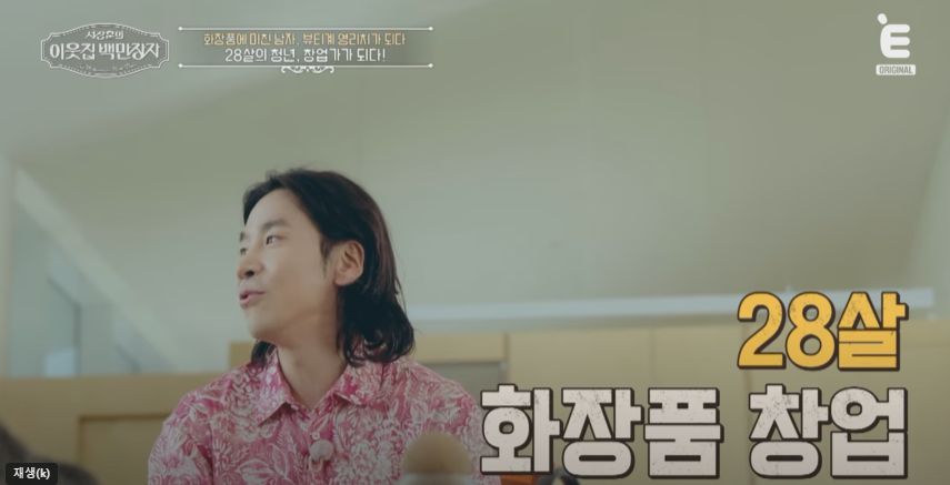 화장품 가게 아르바이트로 시작했던 그는, 당시 월 100만 원을 전부 화장품에 투자하며 ‘덕업일치’를 실현했습니다. 블로그를 통해 남성 화장품 리뷰를 쓰며 팬층이 생기고, 28살에 첫 창업, 이후 중국 B2B 시장에서 **매출 1,500억, 영업이익 50%**라는 어마어마한 성과를 냈죠.