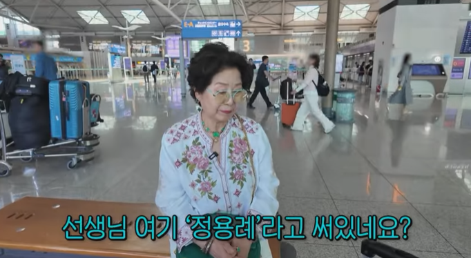 선우용여 선생님은 여행을 떠나기 전 공항에서의 설렘을 가득 안고 등장합니다.