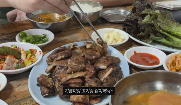 오리고기로 에피타이저로 시작하고 다시 여러 맛집 프로그램에 소개되었던 유명한 감초식당으로 향했습니다. 이곳의 연탄 돼지불갈비는 정말 일품입낟. 연탄에서 구워낸 고기의 향과 맛이 일품이었고, 고추장 소스와 함께 먹으니 더욱 맛있습니다. 순두부도 함께 주문 부드러운 순두부와 고기의 조화가 성시경씨가 좋아하는 맛이라고 합니다.