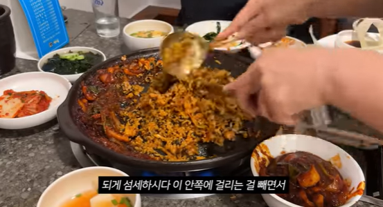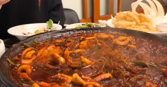 오징어 불고기 → 당면 사리 → 볶음밥으로 이어지는 조합은