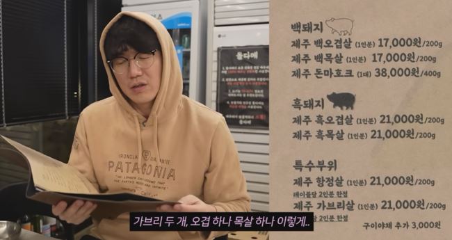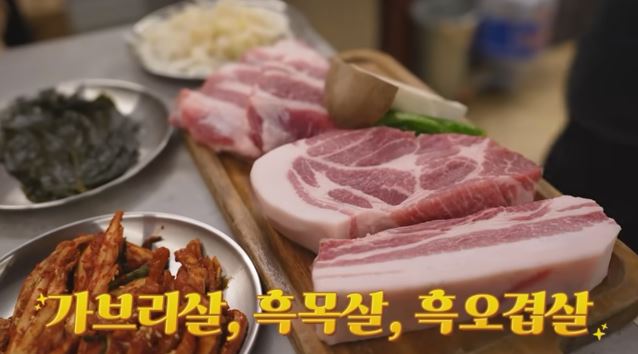 가브리살이 맛있는 것으로 유명한 집, 흑돼지 종류로 요리를 선택합니다.