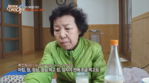 이 아주머니는 하루도 빠짐없이 막걸리로 하루를 시작하고 끝냅니다.