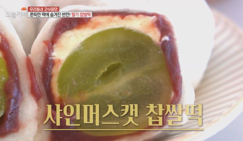 찹쌀떡 장인 단 5초 만에 딸기 찹쌀떡이 빚어집니다.