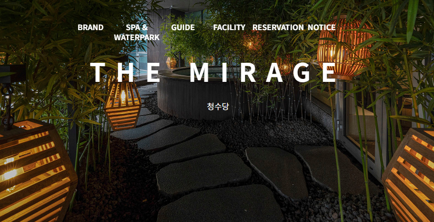 - 5층 더미라지(#themirage) 섹션은 사막의 #신기루 컨셉을 바탕으로 천천히 온기가 올라오는 #온천탕 을 통해 공간을 표현하였고, 특히 도심 속 쉼을 모토로한 글로우서울 #청수당스파 와의 협업을 통해 다양한 스파와 음료를 즐기실 수 있도록 구성되었습니다.