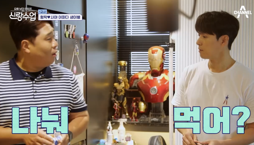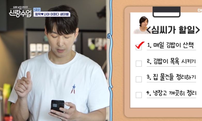 문세윤이 "형수(사야)가 김치를 좋아한다고 해서, 우리도 겉절이를 해먹자. 겉절이는 금방 끝날 거야. 그럼 형, 너는 뭐 만들 거야?" 심형탁은 미소를 지으며 답했다. "그냥 내가 하는거 보면 되지."