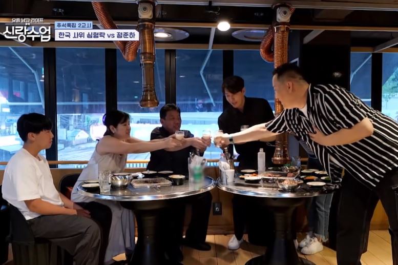 정준하는 처음 처가댁에서 밥을 먹을 때 음식을 많이 먹고 술을 마실 때 얼굴을 돌려서 마셨던 문화차이를 말하며 심형탁의 장인이 좋아하는 술과 안주를 마련하고 당일에 도축한 안창살을 직접 구워주며 심형탁에게 힘이 되어 주었습니다.