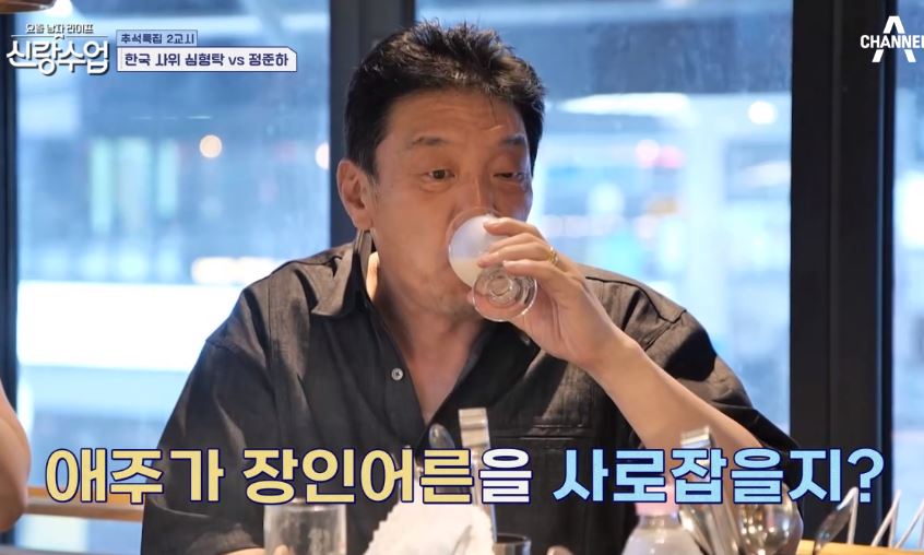뿐만 아니라 심형탁은 정준하에게 부탁해 장인이 좋아하는 산낙지와 정준하가 전통주 소물리에 답게 11도의 맛있는 막걸리를 준비해서 대접했습니다.