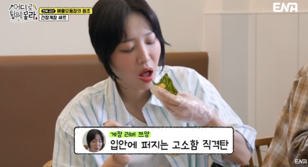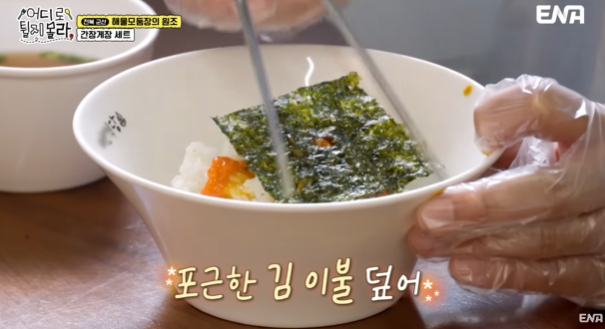 게딱지에 가득 찬 내장에 노른자를 넣어 밥에 비벼 김에 싸 먹는 순간… 출연진 모두 감탄! 고소함이 폭발하는 황금 조합이라고 극찬했습니다. - 간 맞춤형 간장