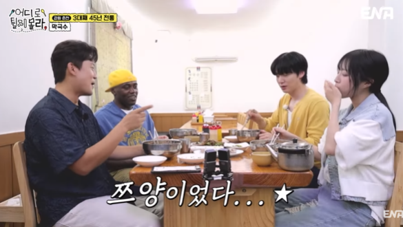 - 설탕을 듬뿍 넣은 뒤 “이 맛이 막국수의 매력”이라며 감탄