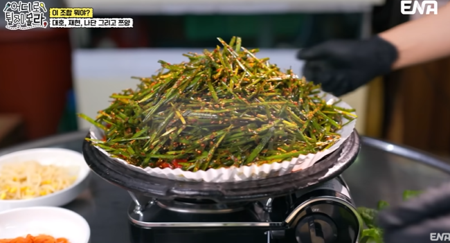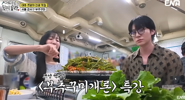영상 초반에서 두 사람은 부추쭈꾸미를 맛있게 먹으며 감탄을 연발합니다.
