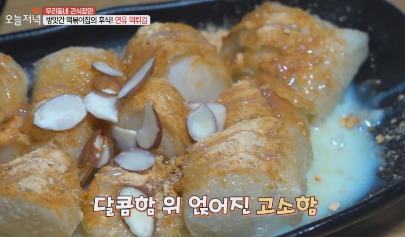 떡을 얇게 튀김 옷을 입혀 바삭하게 튀겨낸 가래떡에 연유와 콩가루, 아몬드를 얹어낸 메뉴 쫄깃한 가래떡을 더 즐길 수 있는 메뉴를 만들고 싶어 특별히 고안한 후식이 요즘 떡볶이 인기를 넘본다네요.