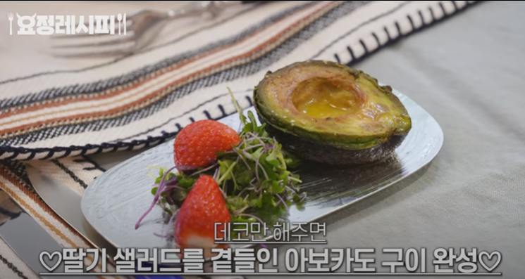 처음 후숙한 아보카도를 사용하며, 껍질째 구워서 요리