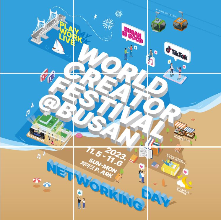 202311월 국제관광도시 부산에서 펼쳐지는 전세계 120명의 유명 크리에이터와 각종 프로그램, 공연 등 다양한 이벤트로 최고의 즐거움을 선사하는 종합 페스티벌입니다.