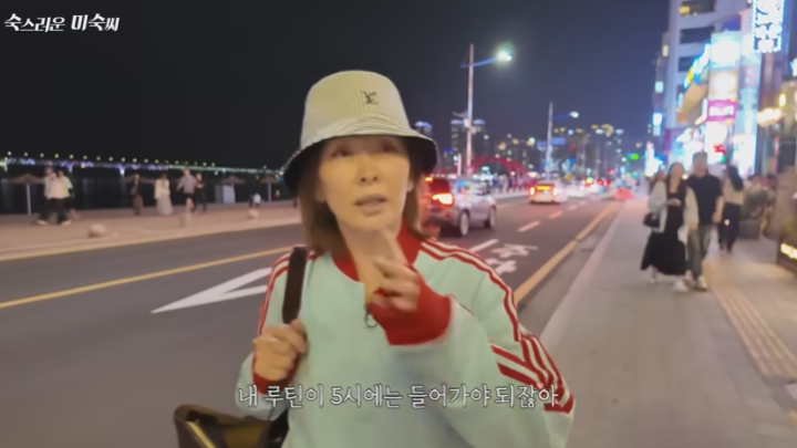 부산의 밤거리. 이미숙 배우는 고요한 길을 걸으며, 20대 시절 마음껏 놀지 못했던 아쉬움을 털어놓습니다. 한밤의 도시 풍경을 배경 삼아 차분하게 흘러나오는 그녀의 회상은 잔잔한 울림을 줍니다.