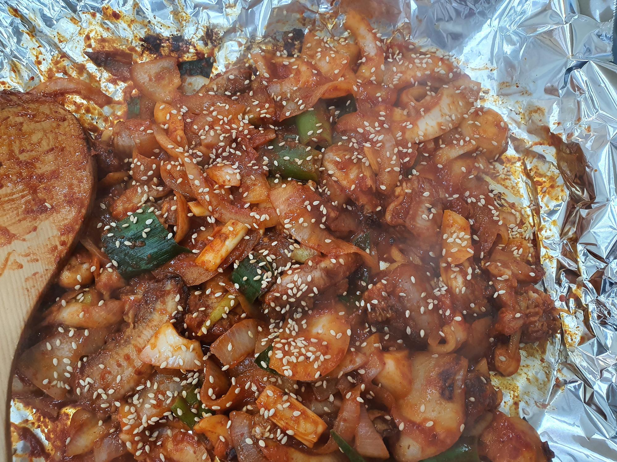 부산 음식 곰장어는 소금구이나 빨간 양념으로 구워 먹지만 회로 즐기기도 합니다. 기장에서는 마른 짚에 불을 붙여서 껍질을 벗긴 뒤 속살을 기름장에 찍어서 먹는 '짚불 곰장어' 원조이다. 여름 보양식으로 부산의 거센 기운이 펄펄 스태미나 상징 곰장어 쫄깃한 살과 담백한 음식입니다.