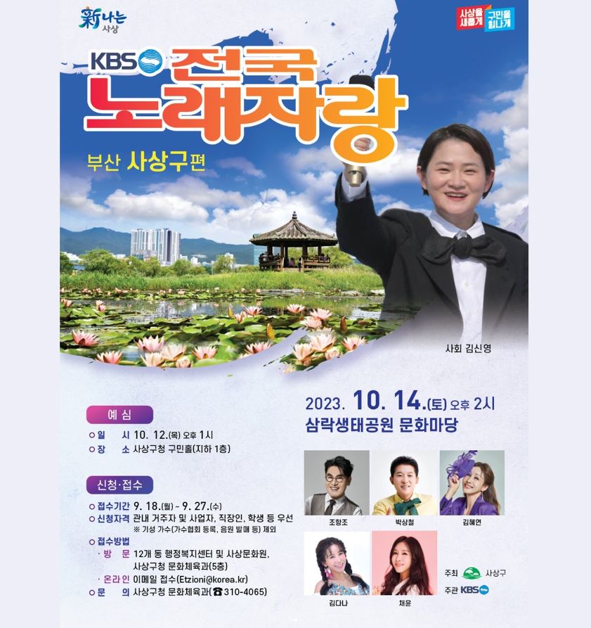 전국노래자랑 사상구편이 삼락생태공원에서 개최합니다.