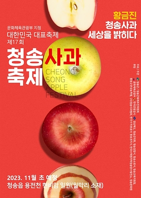경상북도 청송은 적은 강수량과 풍부한 일조량, 깨끗한 자연환경 등 사과를 재배하기 최적의 조건을 갖춘 곳입니다. ‘자연이 빚어낸 명품’이라 불리는 청송사과가 무르익는 가을, 풍성한 수확의 기쁨과 청송사과의 맛과 영양을 함께 나누는 청송사과축제가 열립니다.