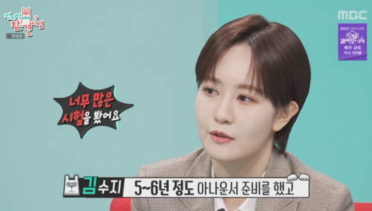 김수지 아나운서는 MBC '전지적 참견 시점'을 통해 앵커, 작사가, 작가로 다양한 활동을 하는 N잡러의 모습을 보여주었으며, 바쁜 일상 속에서도 남편 한기주 씨와의 달달한 러브스토리를 공개해 시청자들의 관심을 받았습니다.