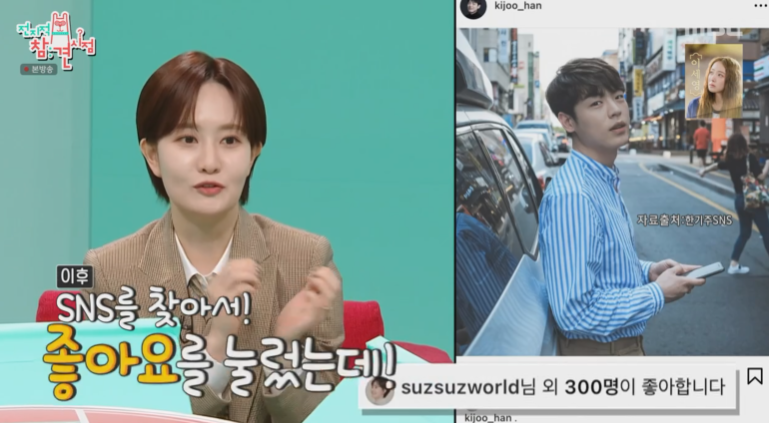 김수지 아나운서는 용기를 내어 한기주 씨의 인스타그램을 찾아 '좋아요'를 눌렀고, 이를 본 한기주 씨가 메시지를 보내면서 두 사람의 인연이 시작되었습니다.