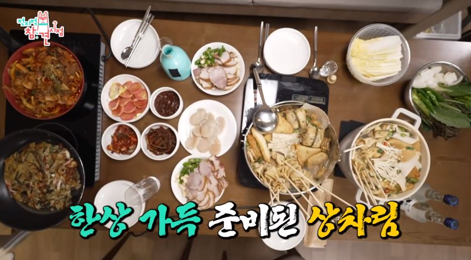 박세리와 일행들은 스키를 타고 난뒤 숙소로 돌아와서 한상가득 상차림을 준비했습니다. 제육볶음, 해물파전, 어묵탕, 키조개회, 굴무침 그리고 특별히 준비한 냉수육은 냄새도 안 나고 쫀득쫀득해서 인기 메뉴 였습니다.