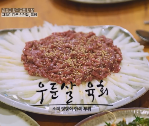 차원이 다른 신선함의 육회 매일 다른 신선한 최상의 부위로 만듭니다. 이집은 양념이 세지 않아서 고기 자체의 맛을 느낄수 있습니다. 한입 가득 넣으면 식감과 풍미가 일품입니다.