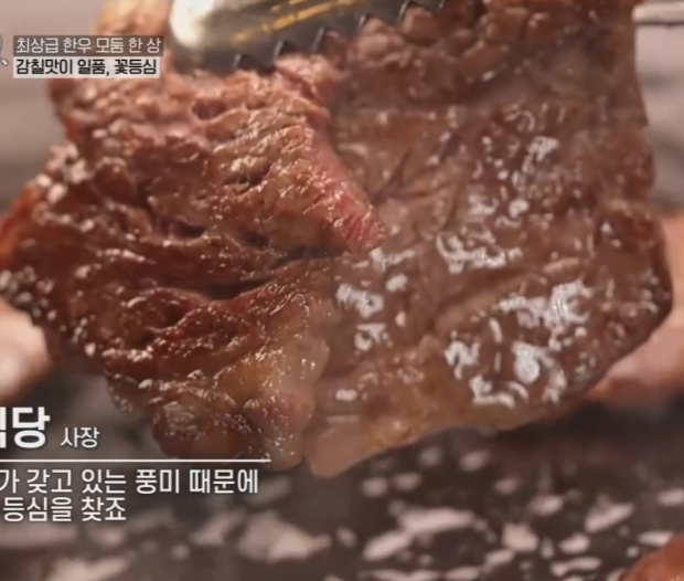 마블링과 칼짐의 조화 고소함 육향, 육즙 전현무는 꽃갈비가 1등이라고 합니다.