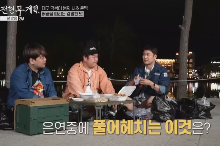 대구 4대 떡볶이 준빈, 현무, 체코제, 민경이 추천한 떡볶이입니다. 천만 배우와 함께 합니다. 떡볶이는 4명이 가게를 직접 사서 먹기로 합니다. 공원에 너무 많은 인파와 함께 천만배우 초롱이 배우 고규필씨가 도착을 했습니다. 준빈과 규필이 너무 많이 닮았다고 도플갱어라고 합니다.