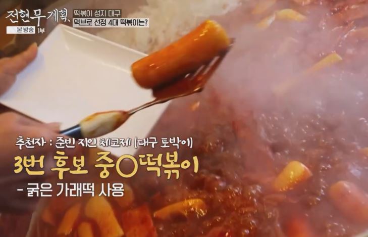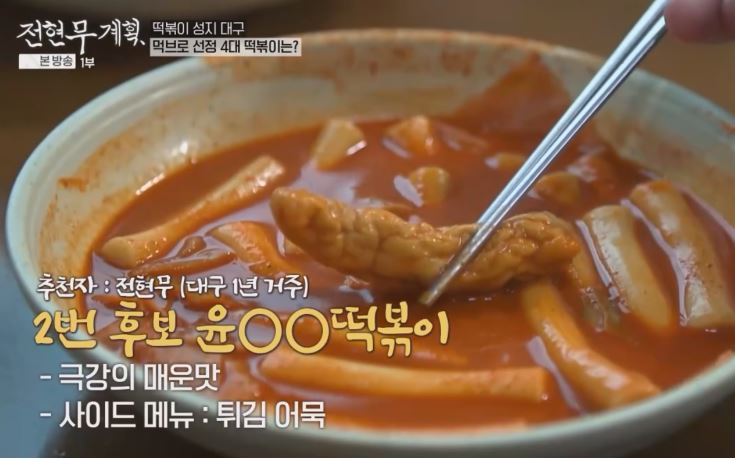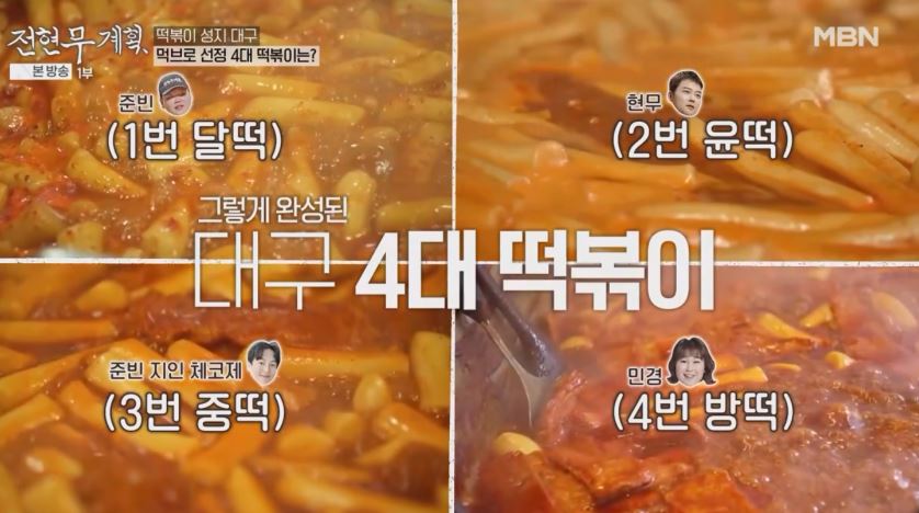 4개의 떡볶이중 대구 최고의 떡볶이를 고릅니다.  밀떡을 사용하고 굵은 고춧가루로 양념한 맛 쫄깃한 밀떡의 정석 튀김만두와의 완벽 조화 만두를 넣어 먹기 위해 국물도 자작한 편 납작만두와 또 다른 비주얼의 튀김만두 맛 당면이 많이 들어간 만두 쫀득한 밀떡 사용, 굵은 고춧가루와 마늘 베이스 튀김만두를 곁들이면 좋습니다.