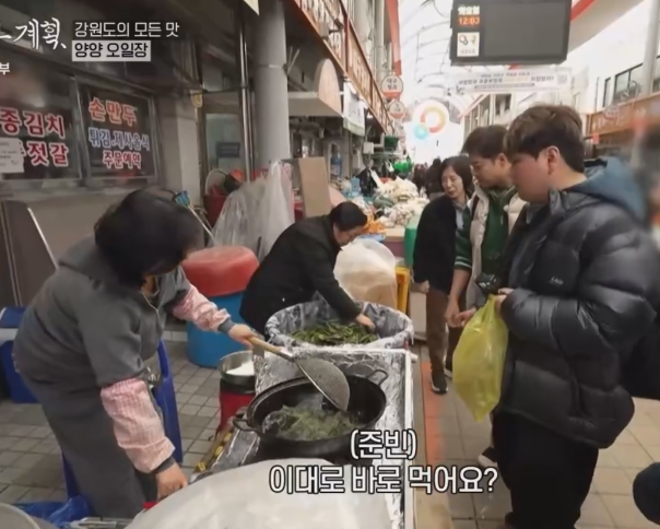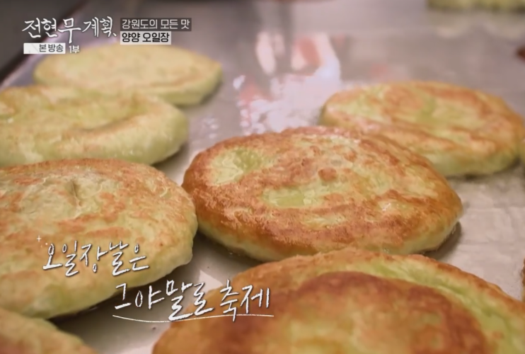 양양시장만의 특별한 음식 무계획의 첫번째 먹방으로 녹차호떡을 선택합니다.