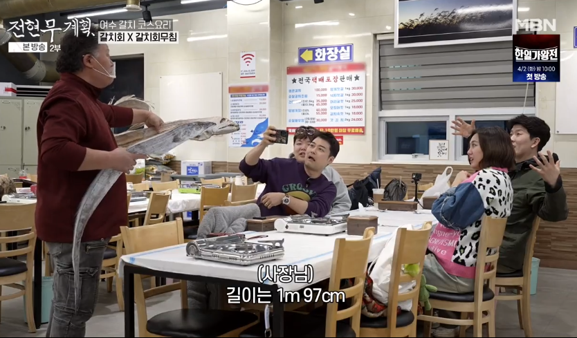 전현무계획 전현무와 일행은 여수 갈치 코스요리요리를 먹으러 왔습니다. 갈치회, 갈치회무침, 유일무이 순살 갈치조림까지 감탄이 절로 나오는 갈치요리로 안내합니다