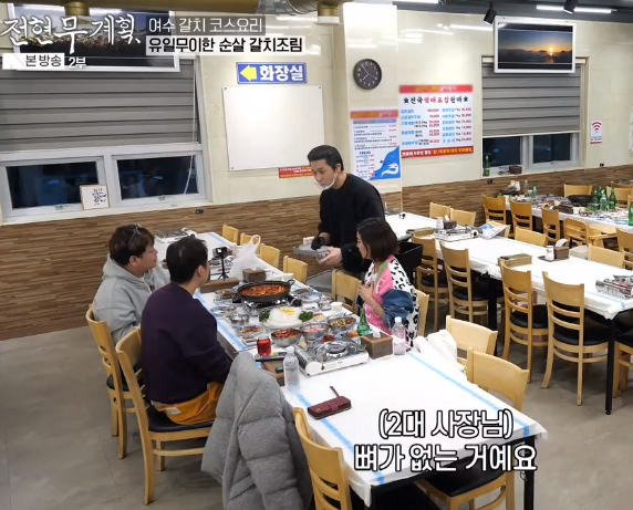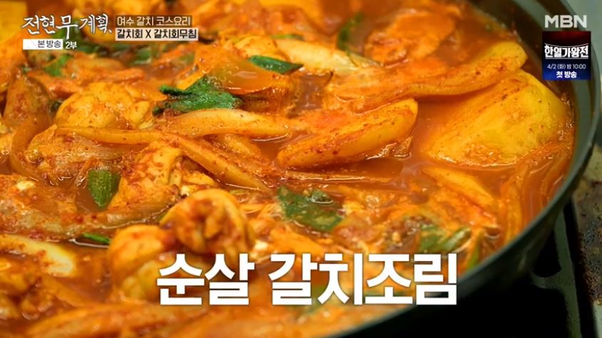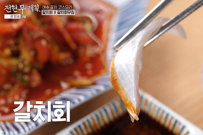 전현무계획 전현무와 일행은 여수 갈치 코스요리요리를 먹으러 왔습니다. 갈치회, 갈치회무침, 유일무이 순살 갈치조림까지 감탄이 절로 나오는 갈치요리로 안내합니다