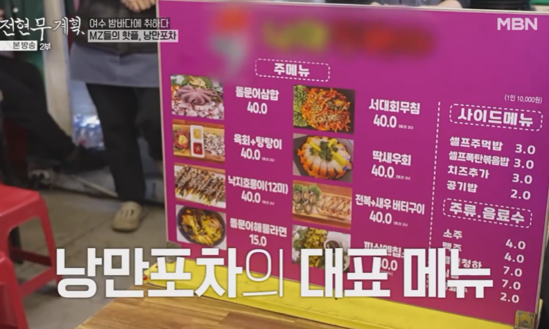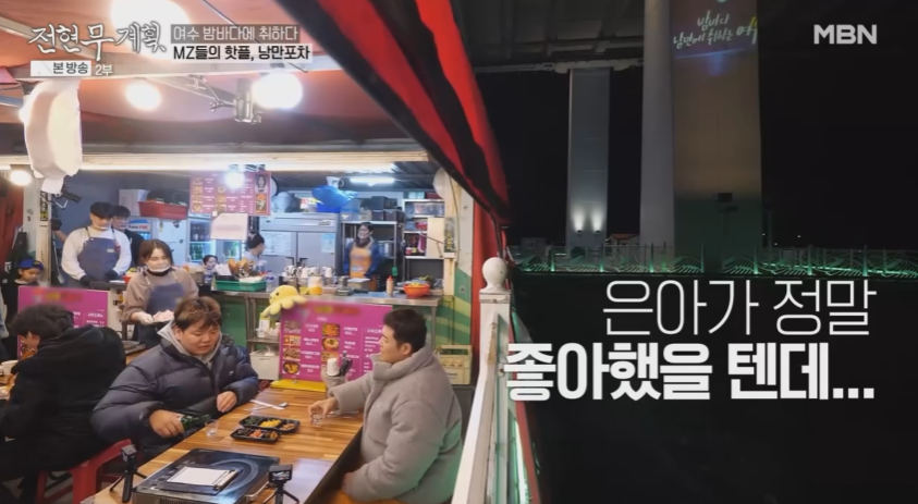 해가 지고 달이 뜨면 여수의 낭만이 시작되는 밤바다 MZ들의 핫플 낭만포차 전현무와 곽준빈이 포차에 들어서자 뜨거운 환호가 이어집니다.