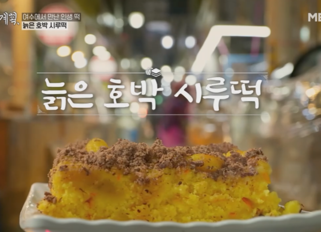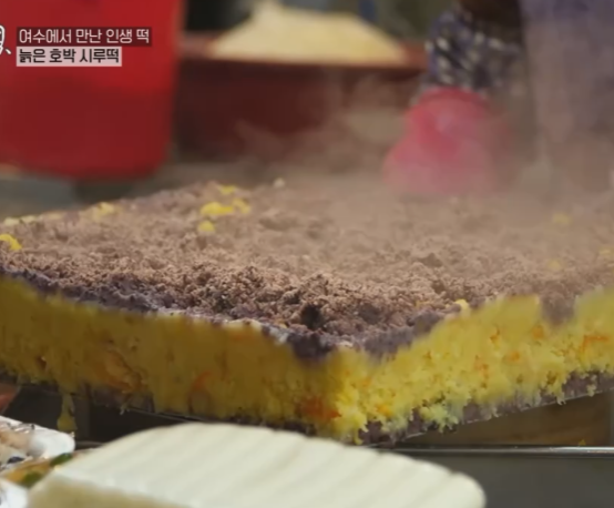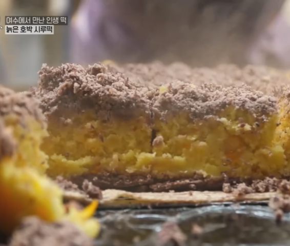매일 만드는 스무 가지의 떡 중에 여수의 맛이 담긴 특별한 떡중에서 늙은 호박 시루떡을 사장님이 추천합니다.