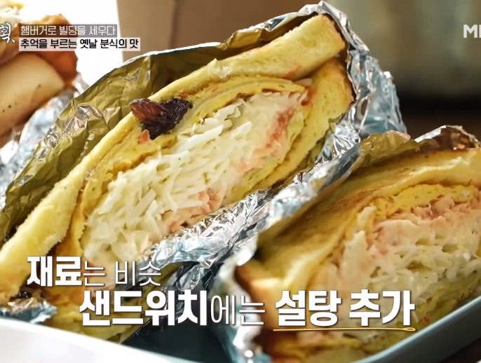 샌드위치는 햄버거와 재료는 비슷하지만 설탕이 추가가 되어 전혀 다른맛입니다.