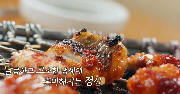 새하얀 속살 위로 빠알간 특제 양념 마사지 뜨겁게 달궈진 숯불 위로 올리면 달콤하고 고소한 냄새에 혼미해지는 정신