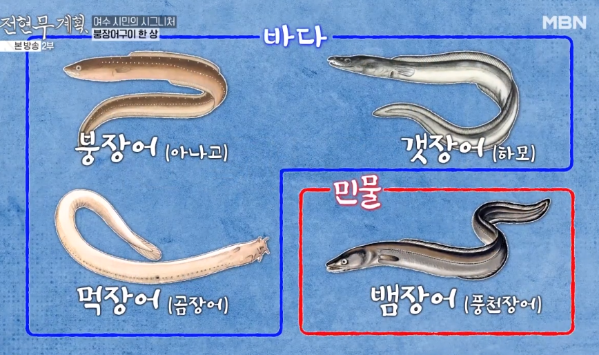 아나고라고도 하며 바다에서 생활해 '바다장어'라고도 불림