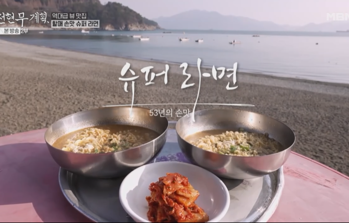 전현무계획, 역대급 뷰 맛집, 여수 할매 손맛 슈퍼 라면, '컵라면 감자탕 레시피' 검은모래만성리해변(해수욕장)을 소개합니다.