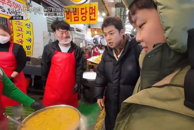 이른 아침 곽튜브가 부산역에서 전현무와 만나서 부산 돼지국밥집으로 향합니다.