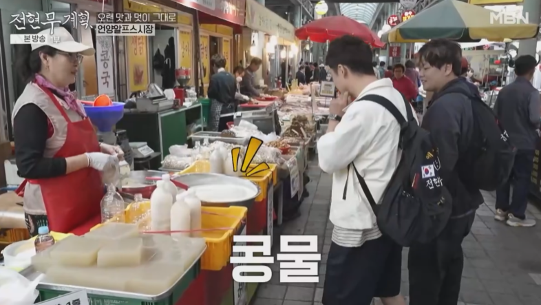 언양알프스시장에서 우무묵이 들어간 구수하고 걸쭉한 콩물 한잔씩을 마십니다.