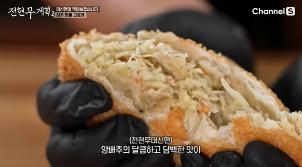 얇은 빵피 안에 아삭아삭한 양배추가 가득 채워져 있어 한입 베어 물면 고소함과 달큰함이 퍼집니다.