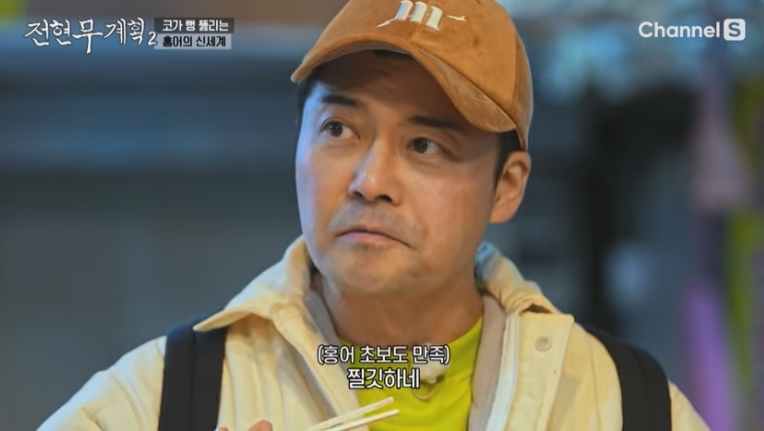 전현무는 홍어 입문자답게 생홍어부터 천천히 도전합니다.