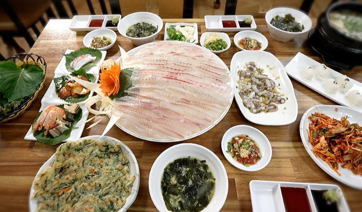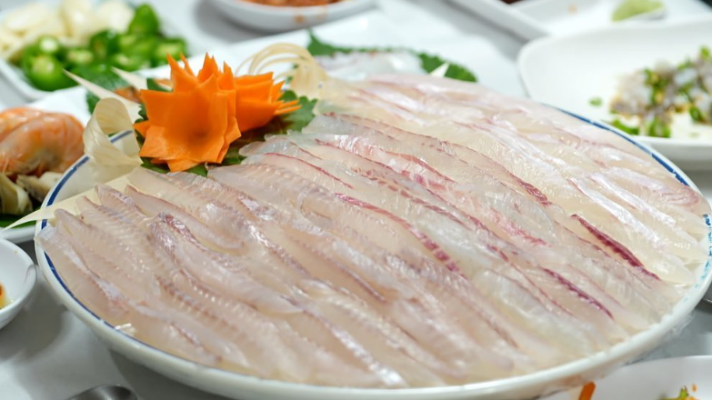 독특한 회 써는 방식이 특징으로, 국수처럼 길게 썰어 제공하여 특별한 식감을 만듭니다 .