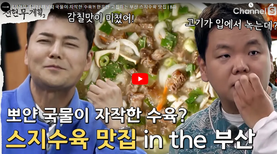 전현무와 곽준빈은 '왔다식당'의 스지요리가 얼마나 특별하고 맛있는지를 잘 보여줍니다. 부산을 방문한다면 꼭 한번 들러볼 만한 가치가 있는 맛집입니다.