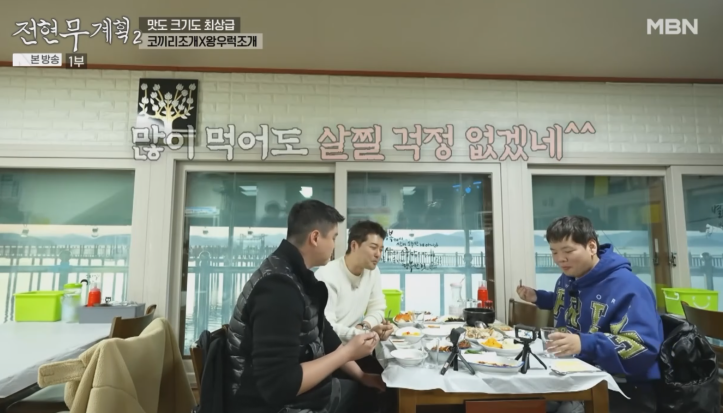 이장우는 먼저 도착해 거제 고현시장에서 충무김밥으로 출출함을 달랬습니다. 한편, 전현무와 곽준빈은 조개집에서 이장우를 기다리며 특별한 메뉴를 주문했습니다.