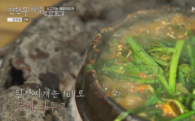 🔥숯불 화로에서 팔팔 끓은 찌개 건더기 덜어