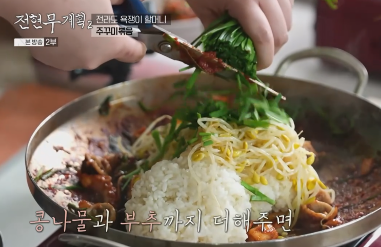 여기에 콩나물과 부추를 더해주면 맛의 완성도가 높아집니다. 아삭한 콩나물의 식감과 향긋한 부추의 맛이 주꾸미와 어우러져 환상적인 조합을 만들어냅니다.