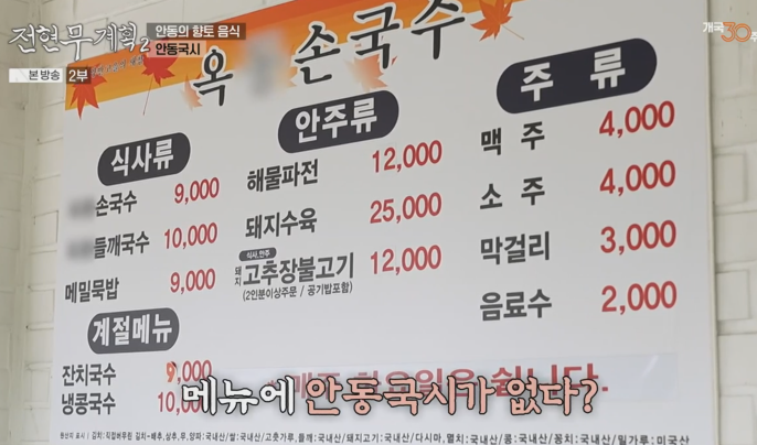 안동의 숨은 맛집, 전현무 계획2에서 안동의 전통 안동국시 맛집을 소개합니다. 첫번째 방문 장소는 30년 전통 안동국시집으로 촬영요청을 드렸지만 거절하셔서 다음에 카메라 없이 방문하기로 하고 두번째 맛집은 강변마을 안동국시집을 소개합니다.